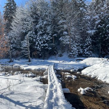 The Adirondack Rail Trail offers great recreation opportunities year round. There are numerous trails off of the rail trail for snowshoeing, cross country skiing, hiking, cycling, and running. Portage trails offer great options for immersing yourself in nature. Winter is a great time to observe nature. It is always fun to see the tracks left behind from otters and foxes.